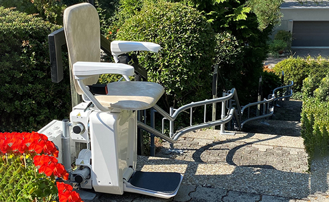 Domov Stoličkové výťahy Vonkajšie stoličkové výťahy Stannah vonkajší stoličkový výťah